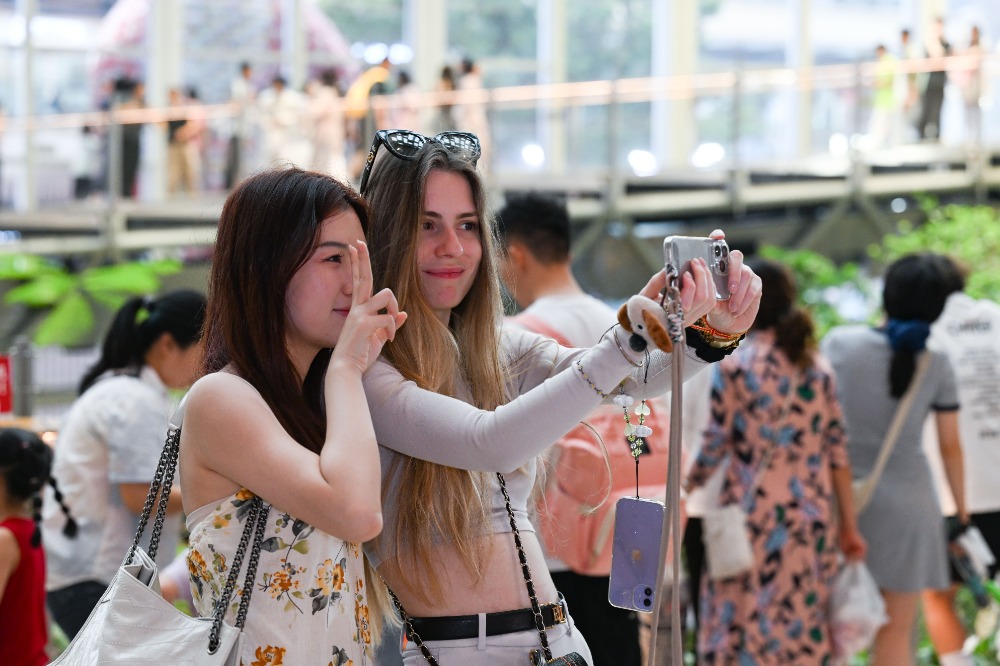 ▲5月3日,两江新区光环购物公园,异邦旅客在打卡拍照。(贵寓图片)特约影相 王加喜