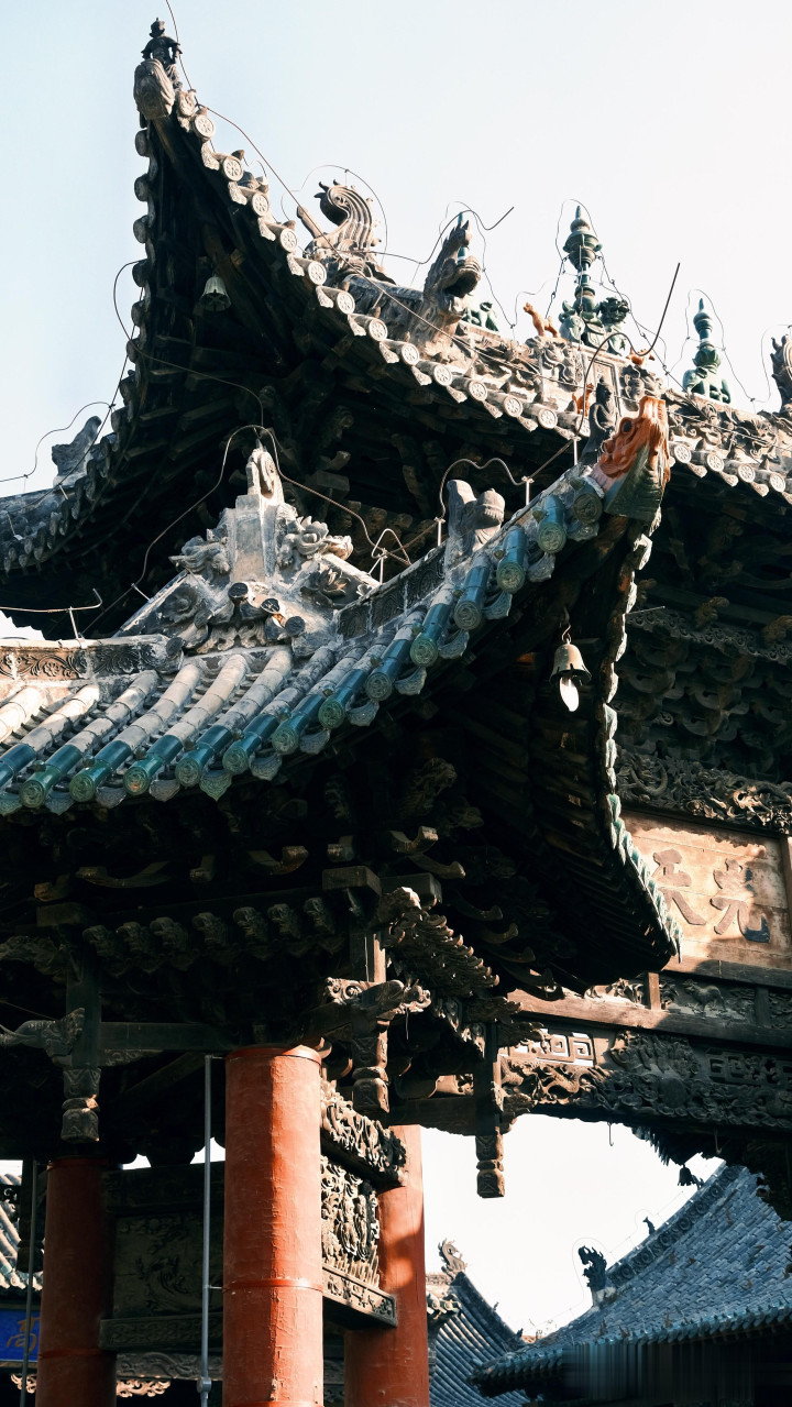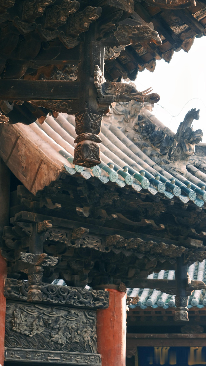 踏入火神庙,明清建筑“中轴对称、前庙后院”的规整方式便一目了然。东西宽34米,南北长85米,2890经常米的院落里,山门、大戏楼、木牌坊、大拜殿、大座殿沿中轴线自南向北步骤铺开,东西两侧的钟饱读楼、陪殿、说念房院对称分散,81间殿宇楼阁错乱有致,既显礼法的肃穆,又藏布局的巧想。刚过山门,勾连搭结构的大戏楼便撞入眼帘,这种将山门与戏楼如鱼似水的运筹帷幄,在华夏古建筑中颇为很是。山门五间硬山顶,两侧马头墙上的砖雕“飞马图”绘影绘声,骏马四蹄腾空,仿佛要挣脱砖壁的约束;正脊上麒麟驮着莲花宝瓶,寓意吉利如意,而戏楼的卷棚顶飞檐挑角,曾吊挂着“炽而昌”“丽乎正”两块砖雕匾额,既盼着寺院香火更生,也暗合着戏曲艺术“雅正为好意思”的追求。设想往常庙会时节,戏台上锣饱读喧天,台下东说念主头攒动,火神的信徒与赶集的商东说念主挤在一皆,看戏道贺,烟火气与雪白感在此刻完竣和会。