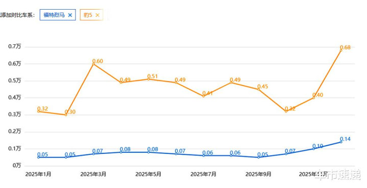 确认公开的单车型销量涌现,在往时的2025年,福特烈马全年累计销量只消8891台,其中,12月销量1437台。说真话,2025年单月销量平均只消741台的福特烈马,在所属的方盒子车型阵营内部,阛阓分解并不是太好意思好,远不如方程豹豹5、坦克400等竞品的销量好。