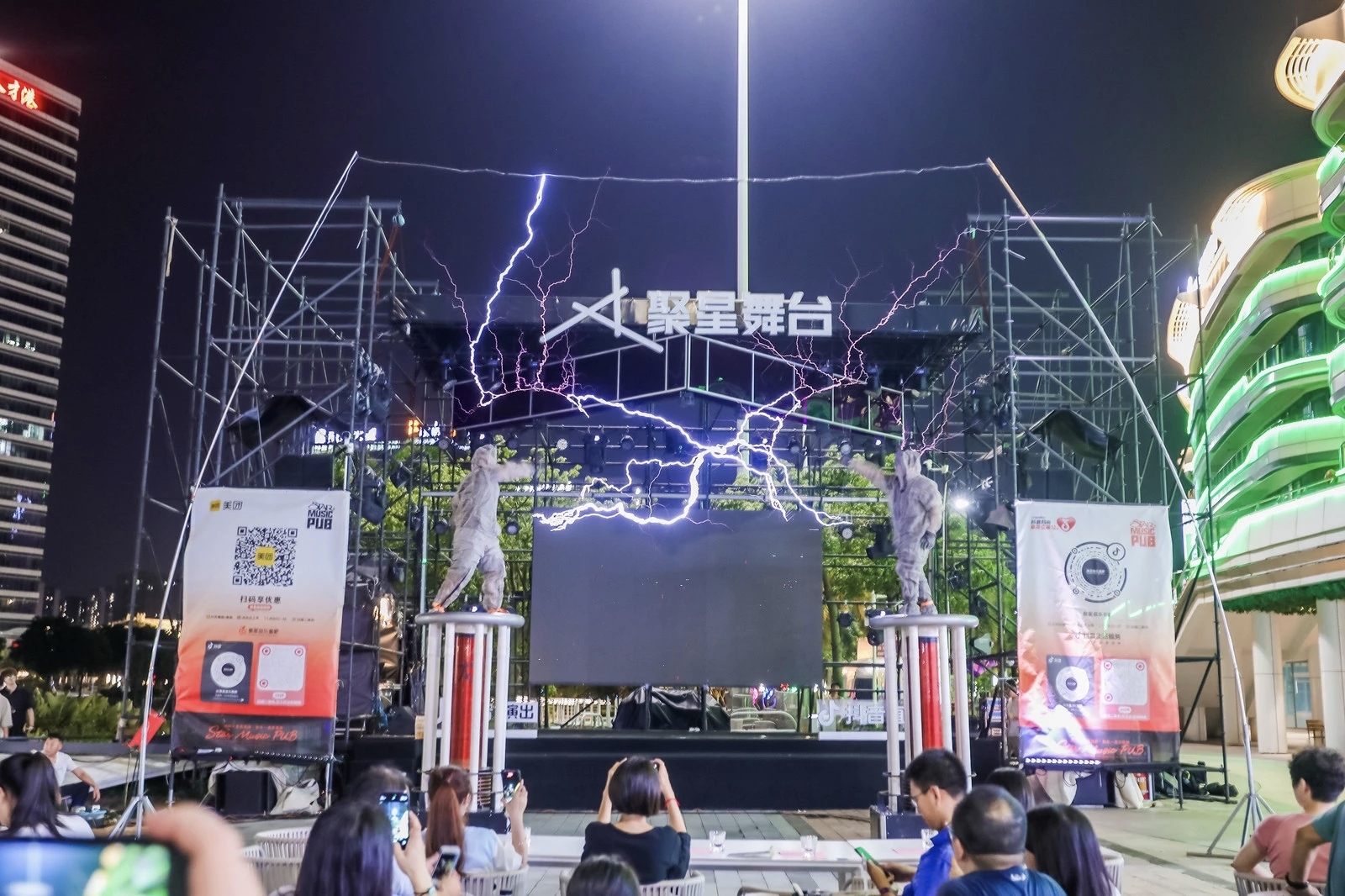 夜幕下的聚星花圃活力迸发,麒麟舞巡游、民乐饰演、电磁风暴科技秀与俄罗文雅化歌舞轮替演出,互助集章打卡、抖音直播、有奖互动等设施,让夜间破费后劲获取充分开释。
