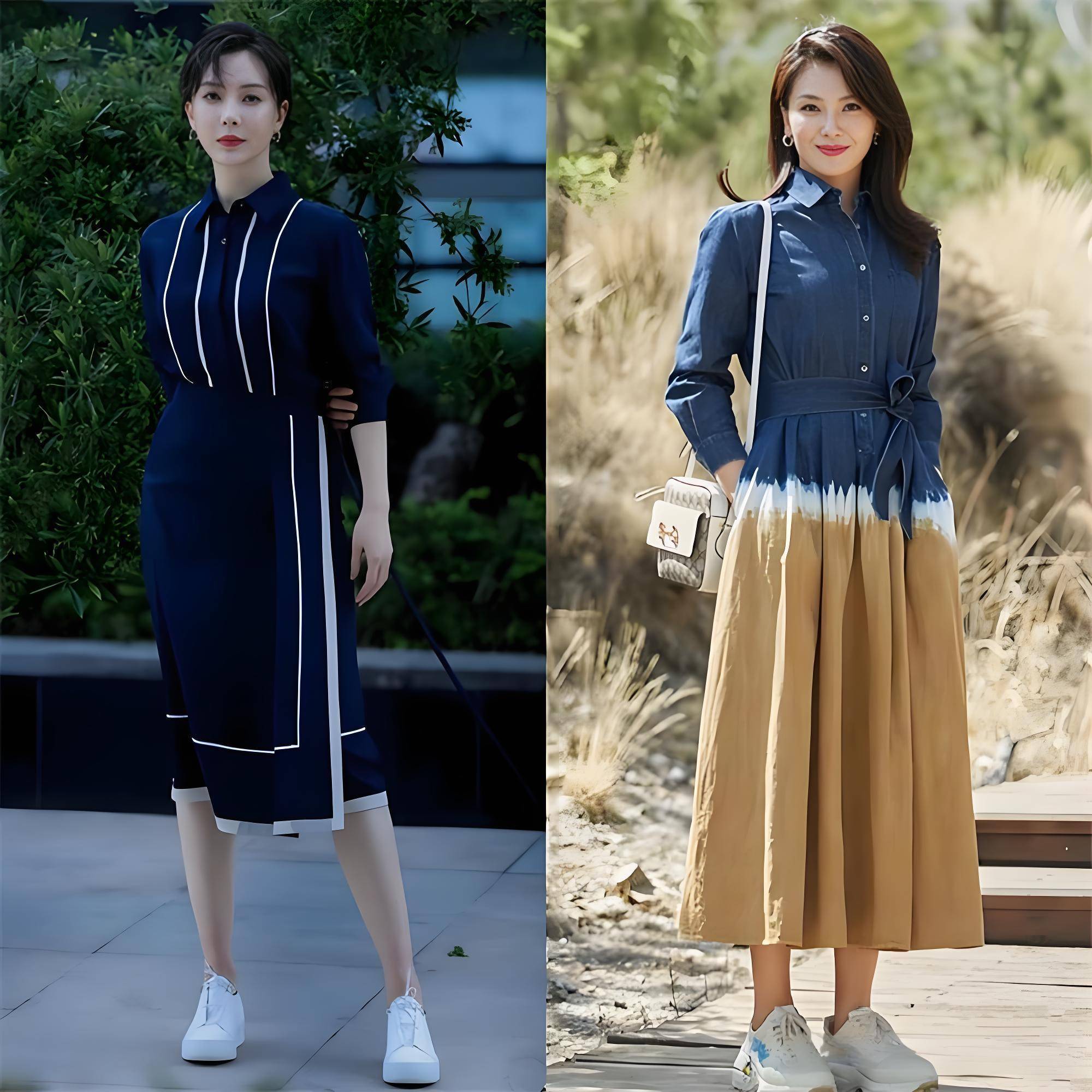 穿衣作风对形象的影响力相等大,中年女东谈主要斗胆尝试不同的作风,举例最常见的检朴知性作风,就完全不挑东谈主,采取一条系带技俩的衬衫连衣裙,搭配一对小白鞋,就能让你好意思出圈。