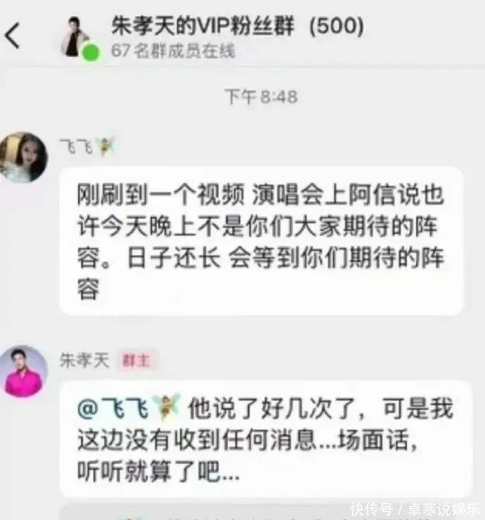 朱孝天因在粉丝群发表“坚抓全开麦不诳骗破钞者”及质疑阿信“局势话”的言论,被指含沙射影讪笑五月天阿信,激发集会对其动机的平庸照顾!而且,他豪恣吐槽黄牛逃税、假唱争议、F4重组矛盾及两边魄力反差张开。