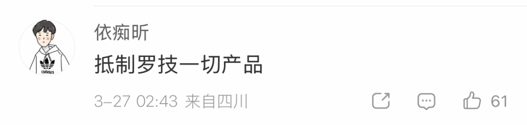 很快,「罗技侮辱消耗者」「罗技狗告白」等话题刷屏,阅读量径直破数千万,无数网友冲进直播间贬抑,直言“太恶心了”“贬抑罗技一切家具,不思当被侮辱的消耗者”。