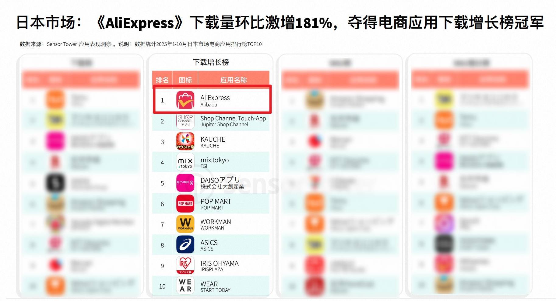 近日,据巨擘数据分析机构Sensor Tower 推出的《2025年购物季电商期骗与品牌商场知悉》报告流露:阿里旗下的跨境电商平台速卖通AliExpress在日本期骗商场下载量环比激增181%,击败KAUCHE等多个原土电商平台体育游戏app平台,拿下本年日本电商期骗下载增长榜冠军。
