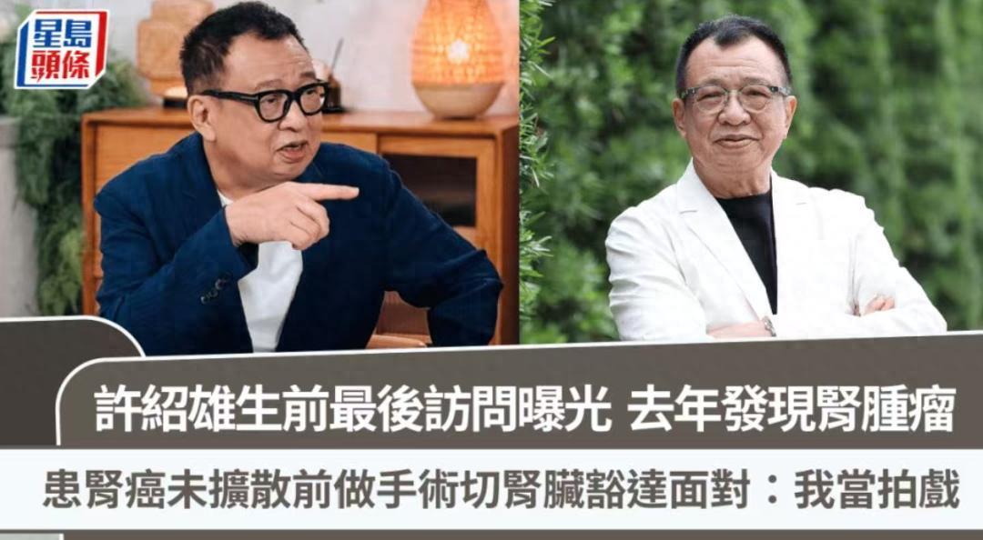 据港媒《星岛头条》报说念,由香港已故资深绿叶副角许绍雄生前录制的电视节目《医师与你一讲饮讲食讲健康II》将于明日(11月11日)播出,节目中许绍雄透露我方患癌一事,谨慎论说生病历程。